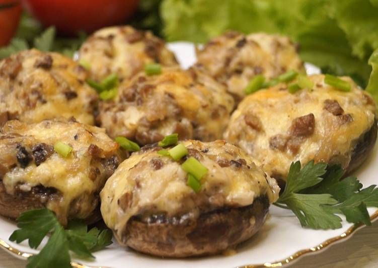 Это блюдо состоит из выдолбленных грибов портобелло, фаршированных говяжьим фаршем.