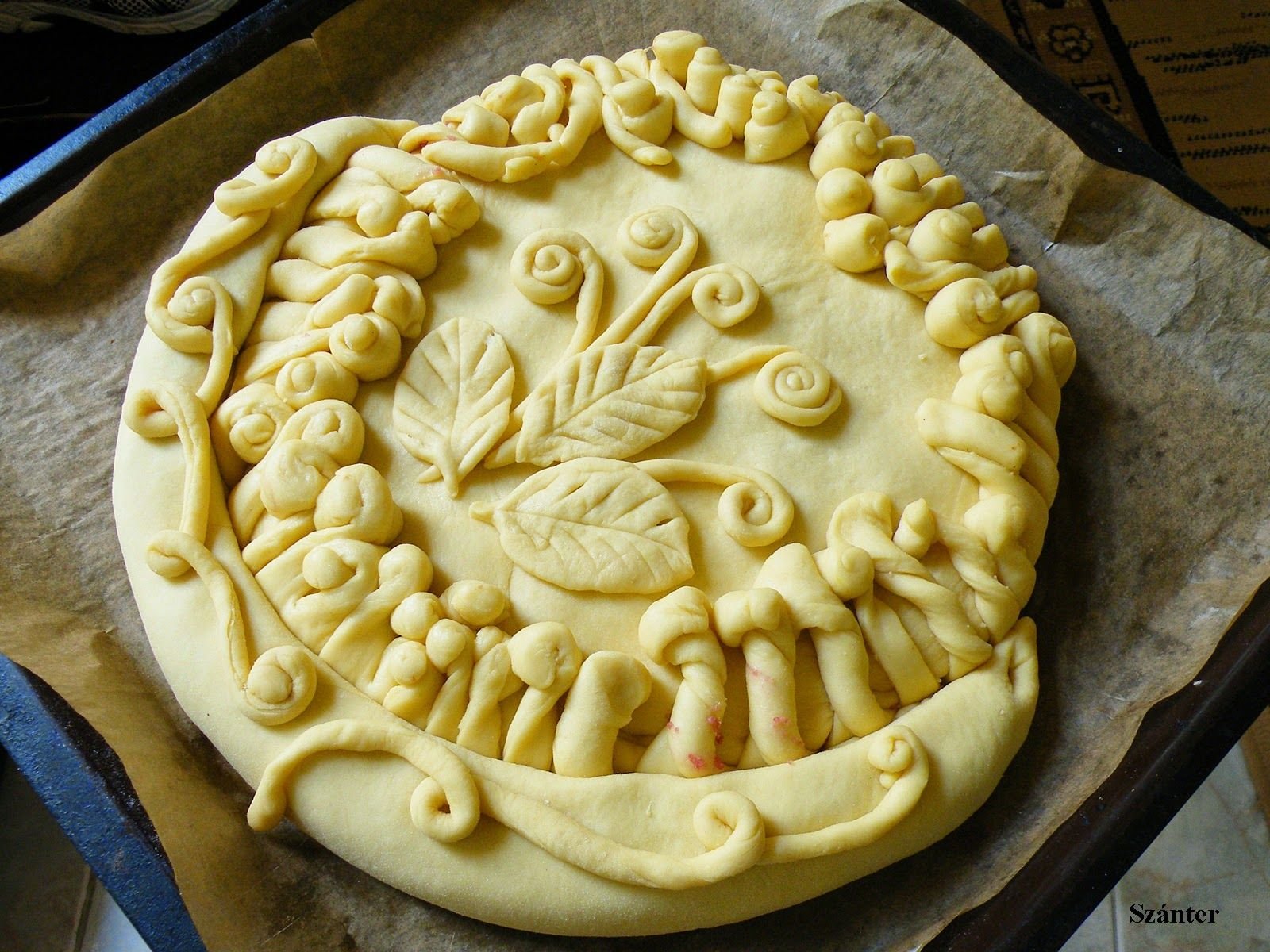 Мне было удобнее перенести заготовку на пергамент на этом этапе, чтобы потом не тревожить сформированный пирог.