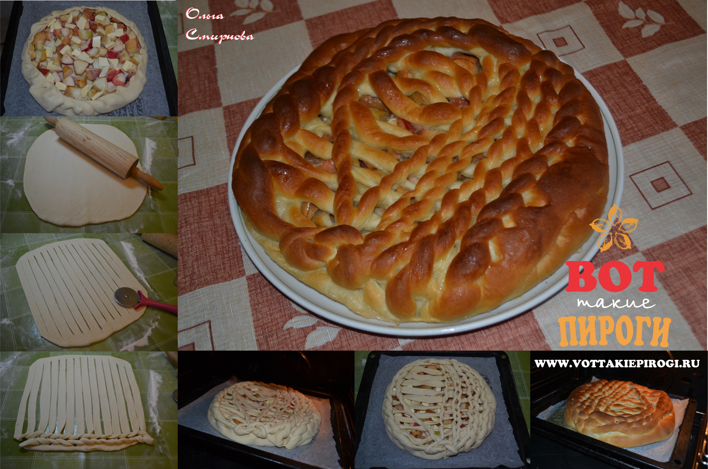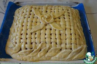 Разрезанные боковые полоски теста заворачивайте поочередно на начинку, накладывая их внахлест и слегка прижимая с боков.