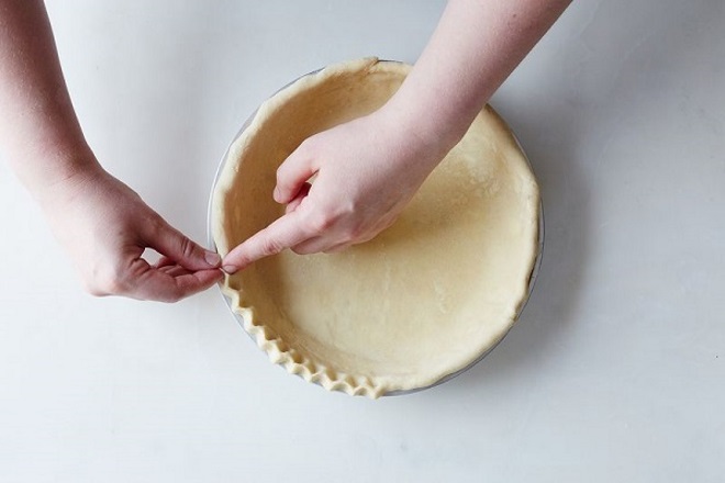 Более кропотливым станет процесс создания края с мелким узором. Например, вы можете пройтись по краю кончиком пальца, защипывая второй рукой кусок теста с другого конца.