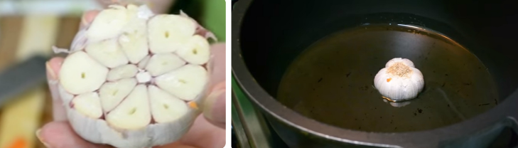 - Все слегка обжариваем, добавляем зиру и барбарис, вставляем две головки подготовленного и промытого чеснока целиком.