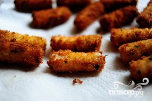 Выложить палочки на бумажное полотенце и дать стечь маслу. Сразу же подавать.