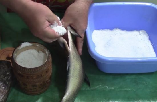 - Сухой способ – подойдет для рыбы с малым весом, приблизительно 100-200 грамм. Рыба очищается и удаляются жабры. Затем она посыпается большим количеством соли. Засаливается она в таре с несколькими отверстиями, чтобы лишний сок стекал через них.