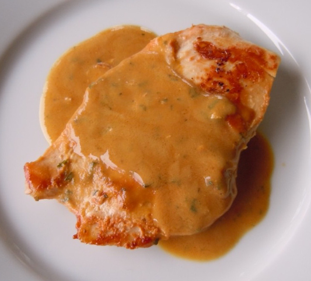 - В сотейнике тушим на сливочном масле лук. Спустя 3 минуты добавляем острый перец и чеснок. Ещё через несколько минут вводим перетёртые помидоры и паприку. Перемешиваем ингредиенты. Когда состав станет однородным, выкладываем на него куриные кусочки, и соединяем между собой.