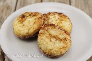 Поскольку в дальнейшем мы будем запекать сырники, то и обжаривать их нужно весьма символически – до зарумянивания с обеих сторон.
