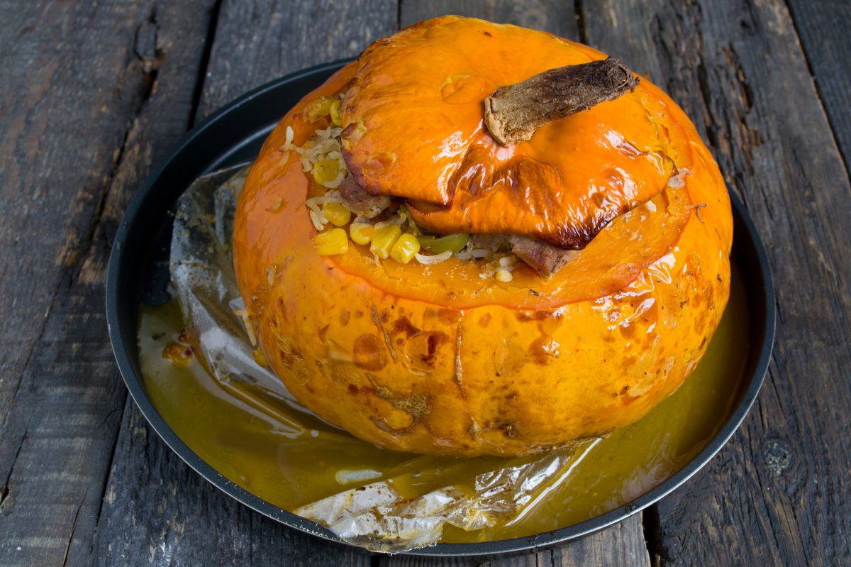 ΠΠ΅ΡΠ΅Π½ΠΎΡΠΈΠΌ Π½Π° ΡΠ΄ΠΎΠ±Π½ΡΠΉ ΠΎΠ³Π½Π΅ΡΠΏΠΎΡΠ½ΡΠΉ ΠΏΠΎΠ΄Π΄ΠΎΠ½, ΠΏΡΠΈΠΊΡΡΠ²Π°Π΅ΠΌ βΡΠ»ΡΠΏΠΊΠΎΠΉβ ΠΈ ΡΡΠ°Π²ΠΈΠΌ Π½Π° 30-40 ΠΌΠΈΠ½ΡΡ Π² ΡΠ°ΡΠΊΠ°Π»Π΅Π½Π½ΡΡ ΠΏΠ΅ΡΡ (ΡΠ΅ΠΌΠΏΠ΅ΡΠ°ΡΡΡΠ° 180 Π³ΡΠ°Π΄ΡΡΠΎΠ²). Π€Π°ΡΡΠΈΡΠΎΠ²Π°Π½Π½ΡΡ ΡΡΠΊΠ²Ρ ΠΈΠ½ΠΎΠ³Π΄Π° ΠΎΠ±ΡΠ³Π»ΠΈΠ²Π°ΡΡ β ΡΠΊΠΎΡΠ΅Π΅, Π² Π΄Π΅ΠΊΠΎΡΠ°ΡΠΈΠ²Π½ΡΡ ΡΠ΅Π»ΡΡ .
