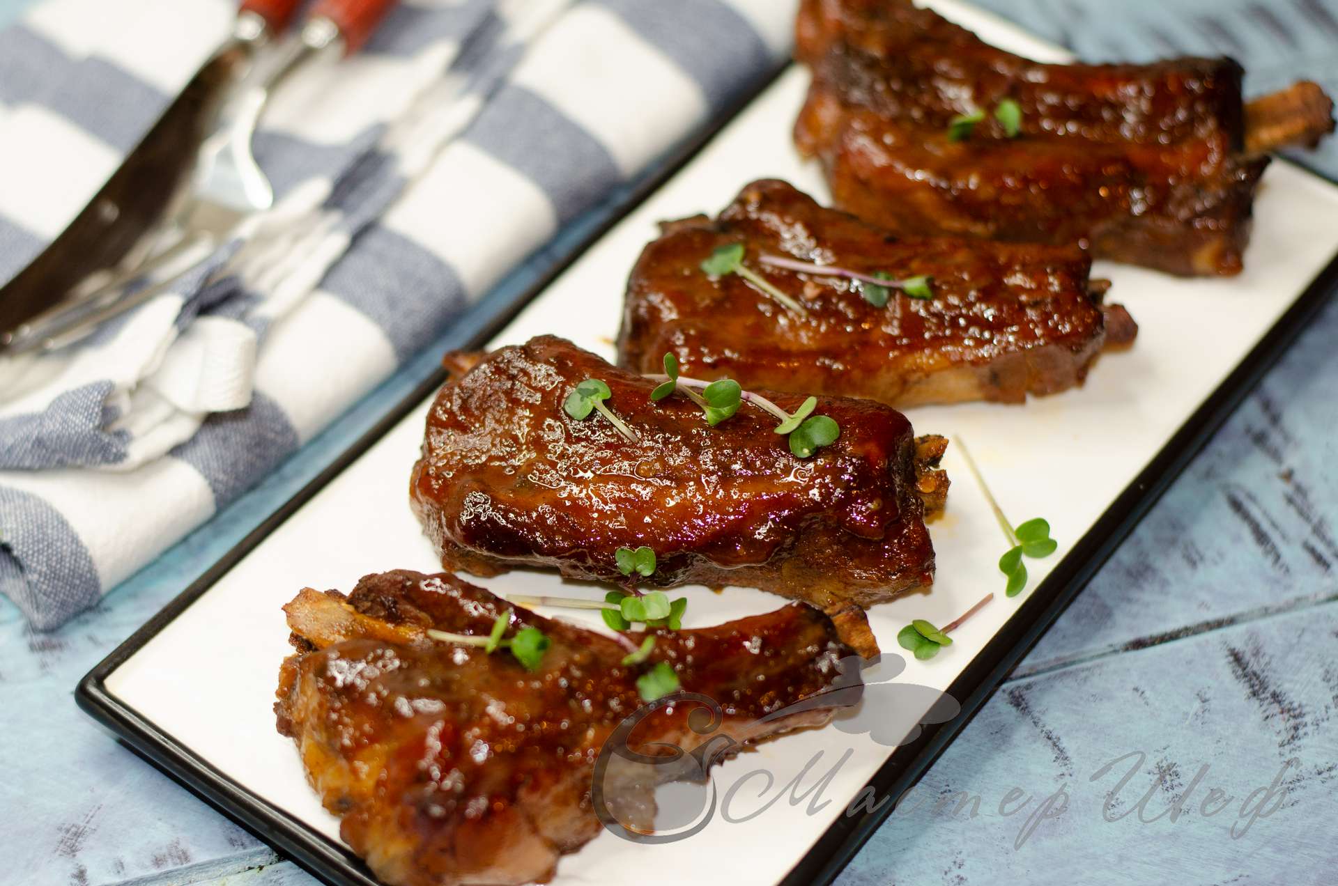 Ребрышки барбекю с медом и чесноком, запеченные в духовке