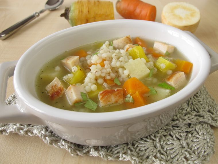 Легкий диетический суп из перловки (рецепт на курином бульоне)