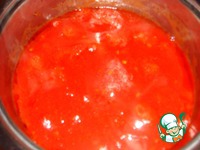- Осталось соединить все компоненты блюда и приготовить их: к овощам влить томатную жидкость, дать закипеть. Сразу после начала бурления заложить фрикадельки. Накрыть посуду, оставить томиться минут на 50 – соус должен загустеть.