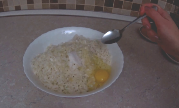 - Чтобы голубцы держали свою форму, в фарш введите яйцо. Потом добавьте вместе со специями соль.
