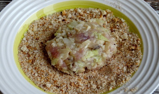 - Овальные или кругленькие голубцы-котлетки слепите мокрыми руками. Потом голубцы можно обвалять в панировочных сухарях.