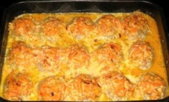 7. Выкладываю полуфабрикаты в жаростойкую форму с высокими бортиками и заливаю соусом на две трети высоты бортиков.