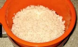 - Рис отварите заранее до готовности, процедите на дуршлаг, не промывайте. Дайте рису остыть.
