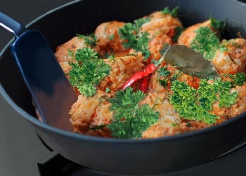 - Выложите обжаренные ленивые голубцы в форму для запекания или глубокую сковороду (казанок). Залейте соусом. Поставьте на небольшой огонь и тушите под крышкой 20 минут. Тефтельки-голубцы за это время пропитаются соусом, получатся пышными и очень мягкими.