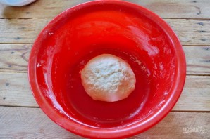 Хорошо вымесите тесто руками. У вас получится плотное тесто, гладкое. Затяните миску с тестом пленкой и дайте ему отдохнуть.