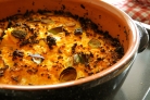 - Всю массу хорошенько перемешайте. Выложите в промасленную форму. Поставьте запекаться на час, разогрев духовой шкаф до 200 о С.