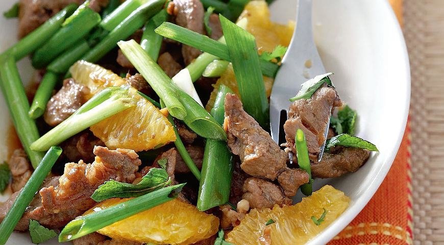 САЛАТ СО СВИНИНОЙ И АПЕЛЬСИНОМ