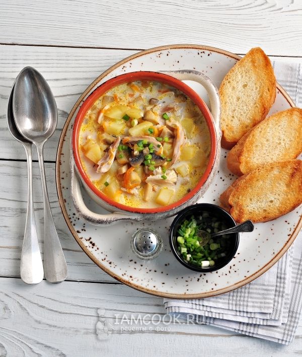 Сырный суп с курицей, шампиньонами и гренками рецепт – Европейская кухня: Супы. «Еда»ЗОЛОТАЯ ТЫСЯЧА