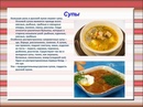 Супы играют важную роль в питании человека, они способствуют образованию пищеварительных соков, улучшают аппетит. Супы готовят на различных бульонах (мясном, рыбном, грибном), а также на молоке, простокваше и хлебном квасе. По сравнению со вторыми бл1дами супы менее калорийны, они не богаты витаминами, поэтому в них целесообразно добавлять различные коренья (морковь, лук репчатый, лук-порей, петрушку, сельдерей, зеленый лук и чеснок).
