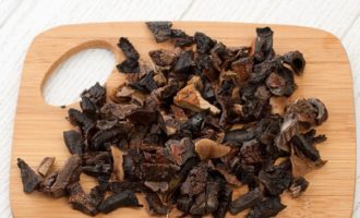 - Залить сушеные лесные грибы теплой водой на полчаса.